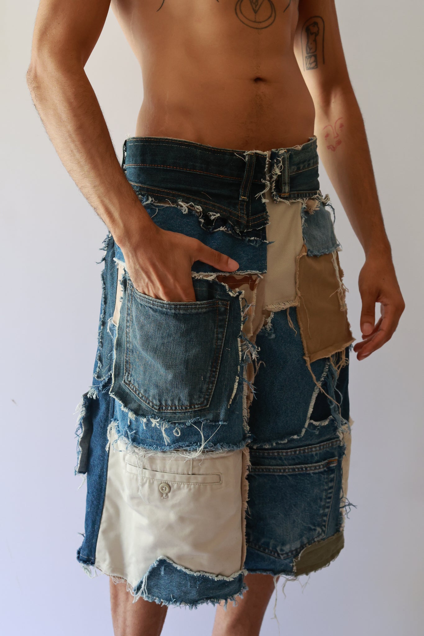 Custom patchwork, made from upcycled materials.