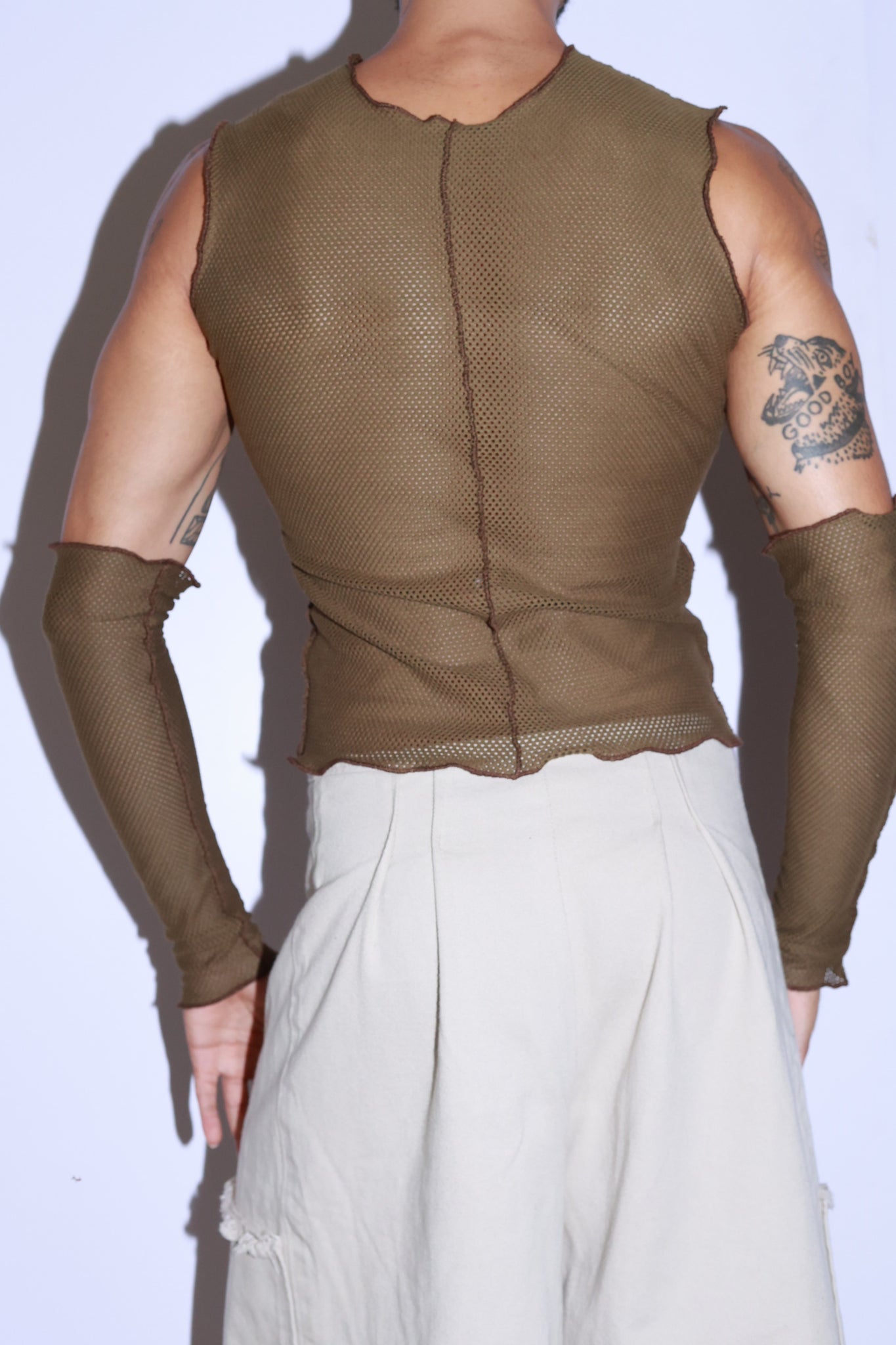 Model is a size medium/small, chest 35”